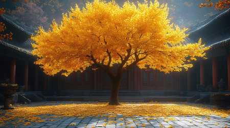 Generative AI : Ginkgo biloba yellow foliage in autumn