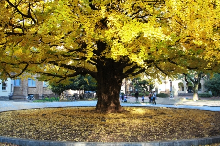 Beautiful yellow Ginkgo leaves at Icho Namiki-dori(Ginkgo Avenue),Meiji Jingu Gaien,Aoyama area,Tokyo,Japan.