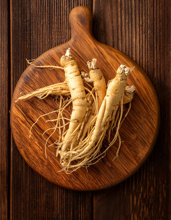 Ginseng Root on Wooden Board