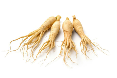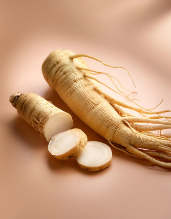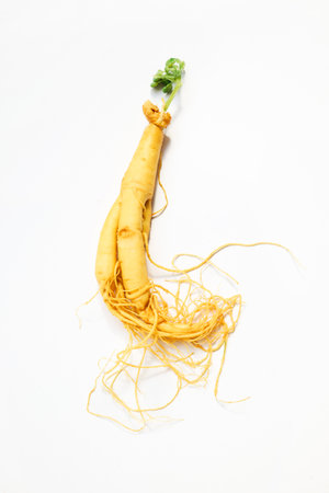 Fresh Ginseng Root on a white background. Vibrant and organic..