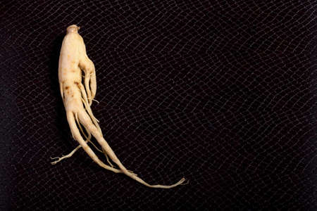 ginseng on the background of snake skin with space for text