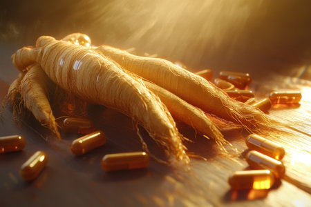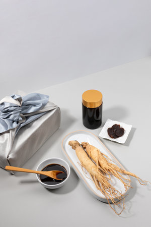 ginseng on a light background with space for text
