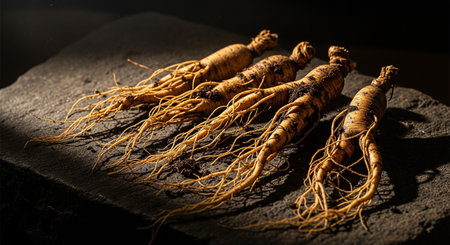 Korea ginseng root. Ginseng has been used in oriental medicine. Generative AI