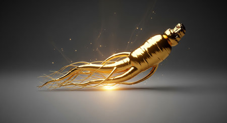 3d rendering of a golden ginseng on a dark background