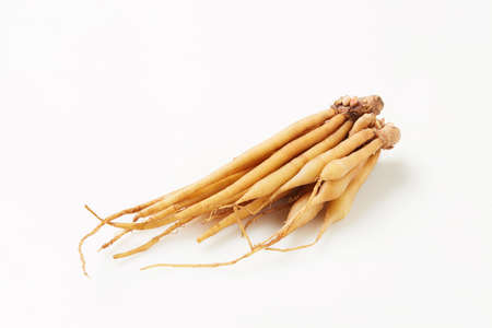 Fresh Ginseng Root on a white background. Vibrant and organic..