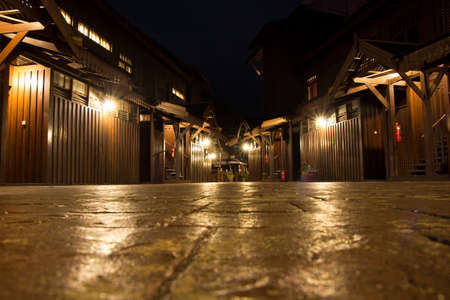 Lunar new years beautiful. Chinese New Year. Asian retro ancient night city style Tilt-shift.