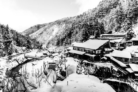 Japanese village Yudanaka in winter, Nagano Prefecture, Japan.
