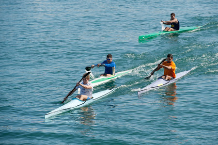 Rowing competitions in open water among women. Women's sports