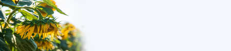 Banner part of sunflower sun against the background of the blue sky