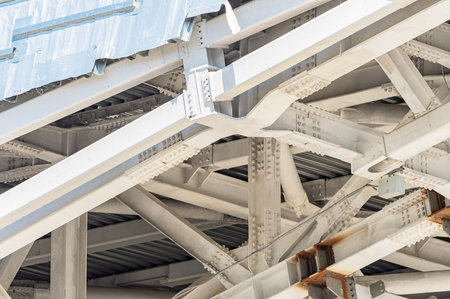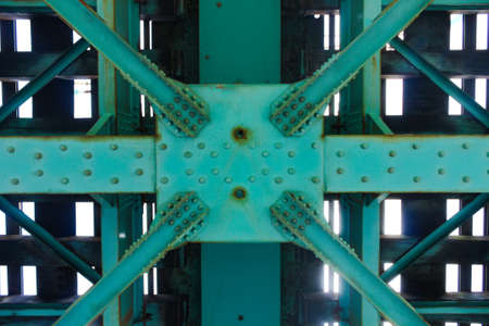 Steel girder bridge construction, riveted joint. texture.