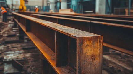 A captivating glimpse into an industrial construction site featuring exposed steel beams and natural light illuminating the workspace, highlighting urban architecture evolution.
