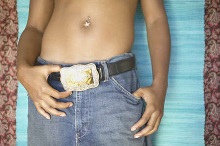 Mid section of woman with pierced navel