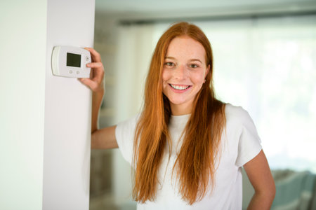 Close-up Of A Woman Adjusting Temperature On Thermostat