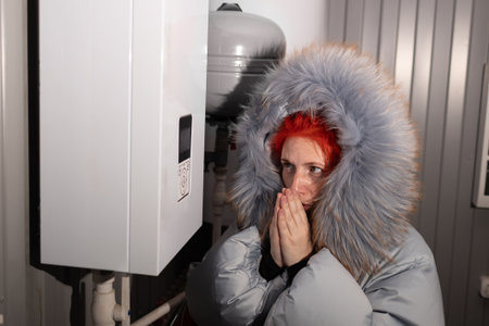 the woman is afraid that the cost of heat is rising. concept
