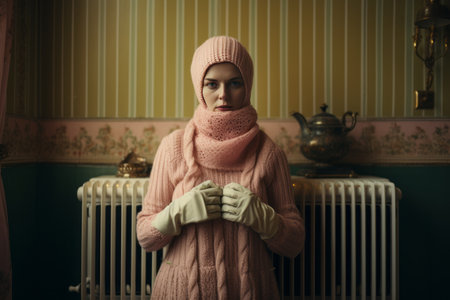 Surviving the Cost of Living Energy Crisis: A Woman Finds Comfort by the Radiator, Clad in Gloves