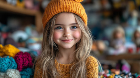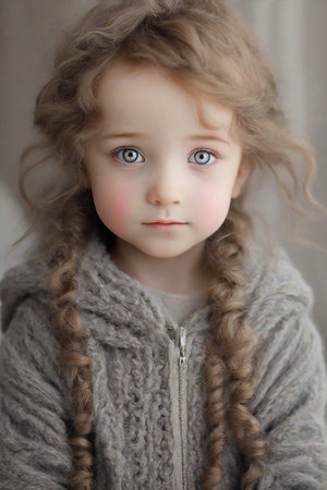 Portrait cute caucasian little preschool girl daughter toddler pretty talented kid friendly female face beautiful blonde baby with green eyes smiling looking at camera happy small child enjoy holidays