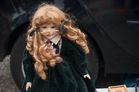 Beautiful dolls on sunday brocante in small alsacien village, France