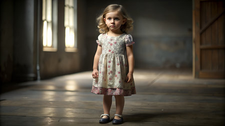 KHARKOV, UKRAINE- 3 MARCH 2022: little girl plays with doll in basement. Children hide in bomb shelters during intense shelling on residential areas