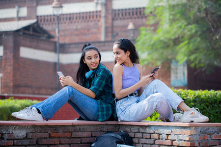 Modern young girls using mobile phone