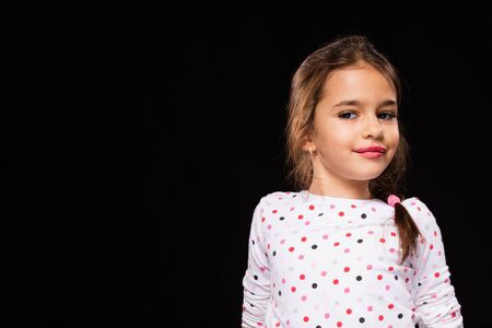 Beautiful little girl close-up. The concept of beauty and fashion, happy childhood.
