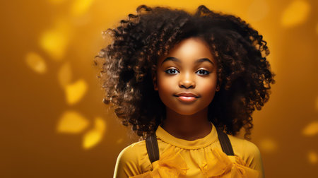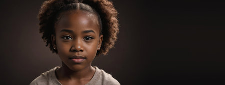 An African American Juvenile Girl, Isolated On A Dark Brown Background With Copy Space. Generative AI
