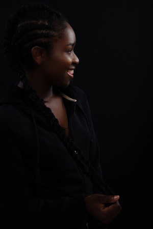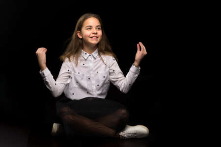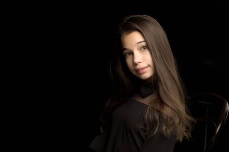 Portrait of a beautiful teenager girl in a black sweater .Black background