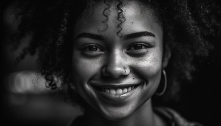Smiling young women exude confidence in black and white portrait generated by artificial intelligence