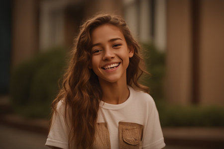 Cheerful Young Girl Smiling in Yellow T-Shirt