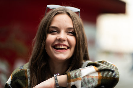 A portrait of a young, vibrant woman joyfully smiling at the camera, ai-generated