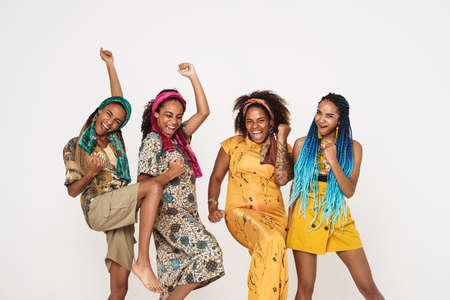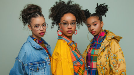 Beauty portrait of beautiful black women wearing colorful stylish clothes - Pretty african young women posing in studio, concepts about beauty, cosmetology and diversity