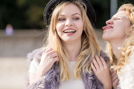So much fun. Delighted nice women laughing together while showing their positive emotions