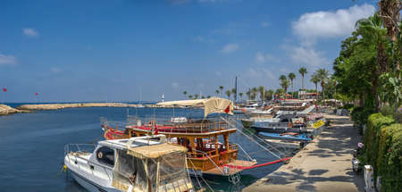 KYRENIA, CYPRUS, AUGUST 25, 2017: View of a port in Kyrenia/Girne during a sunny summer day, Cyprus