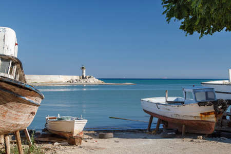 Image of fishing boats in the bay near Methoni, Peloponnese, Greece