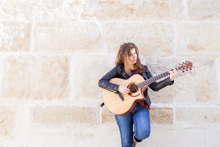 Lovely young street musician with guitar
