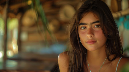 Pretty Middle Eastern Woman with Light Colored Eyes Smiling