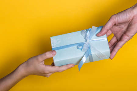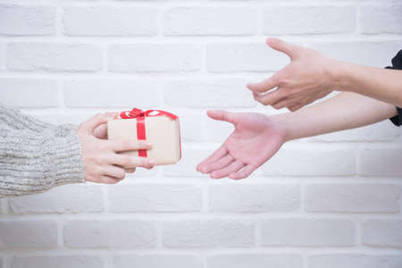 giving gift box in with hands On special days for special person and copy space background