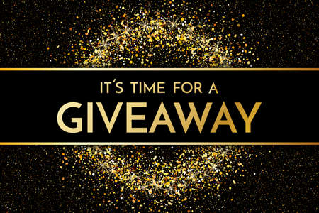 Time for a giveaway - banner template. It s time for a Giveaway phrase on dark glitter background. Christmas and New Year giveaway - holiday baner template. Vector illustration