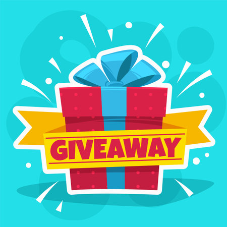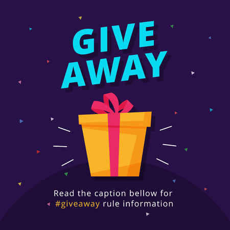Giveaway poster template design for social media post or website banner. Gift box vector illustration with modern typography text style.