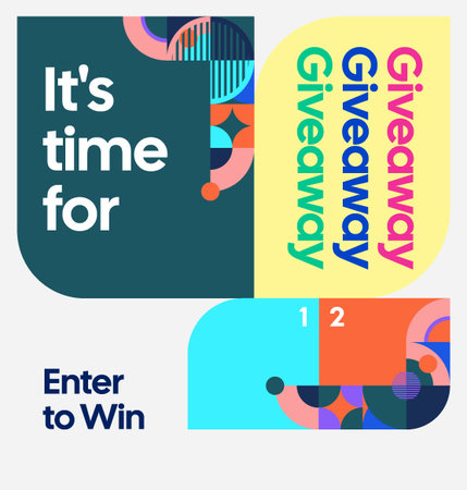 Giveaway winner announcement social media post design with colorful geometric ornaments. Perfect for business advertising. Festive giveaway background
