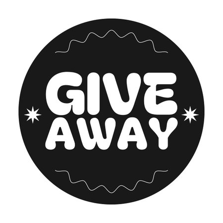 Giveaway promo circle black and white sticker illustration. Give away freebie. Announcing contest. Free gift reward. Label isolated. Monochrome badge marketing. Promotional emblem. Advertising tag