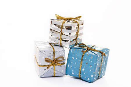 Christmas gift boxes. Isolated on the white background with copy space