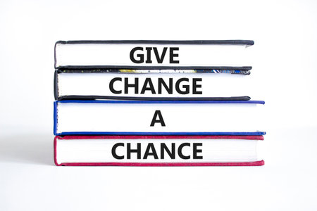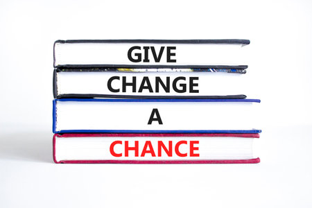 Give change a chance symbol. Concept words phrase Give change a chance on beautiful books. Beautiful white paper background. Business Give change a chance concept. Copy space.