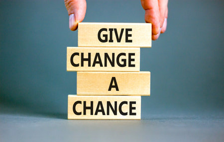 Give change a chance symbol. Concept words phrase Give change a chance on beautiful wooden blocks. Beautiful white paper background. Businessman's hand Business Give change a chance concept Copy space