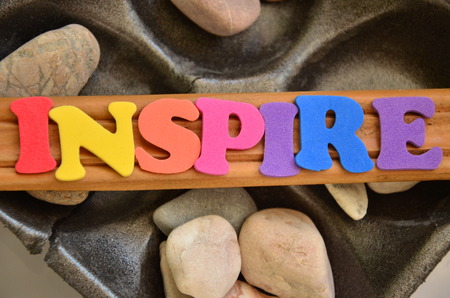 Inspire word written on wood block. Inspire text for your design, concept.
