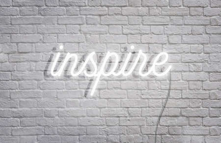 White neon sign Inspire on grunge concrete wall