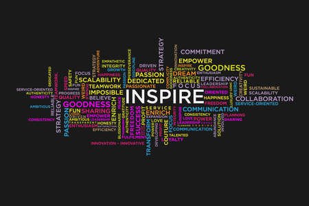 Inspiration words cloud on the virtual screen.