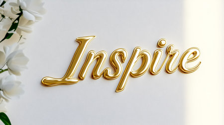 Elegant gold lettering spelling inspire with white flowers
