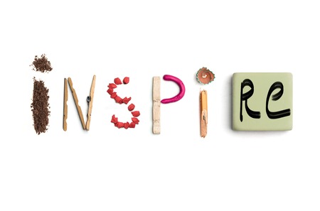 The image features the word INSPIRE formed with cutout letters placed on a soft textured background. Perfect for concepts of motivation and creativity.
