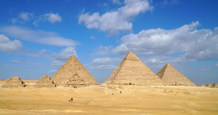 Panorama of the Great Pyramids of Giza, Egypt architecture, View from city