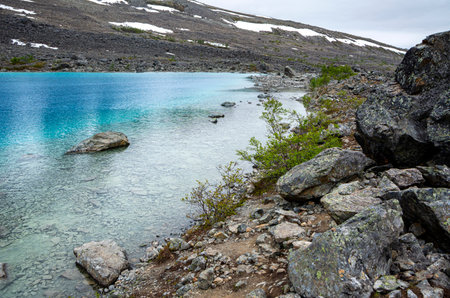 tranquil landscape at Gjende lake, Besseggen ridge, Jotunheimen National Park, Norway